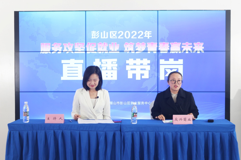 11月25日,眉山市彭山区首次直播带岗活动在区直播电商基地举办,此次直播带岗活动以“服务攻坚促就业,筑梦青春赢未来”为主题,旨在助力企业人才双向在线奔赴。