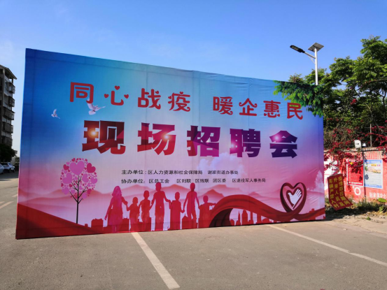 为进一步助力复工复产,解决因疫情影响造成的“用工难”问题,为企业和劳动者“搭好桥”,建立良好的供需平台和就业环境。4月28日,由彭山区人社局、谢家街道办主办,区总工会、区妇联、区残联、团区委、区退役军人事务局协办的“同心抗疫、暖企惠民"现场招聘会在谢家镇毛河安置小区隆重举行。