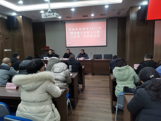 为贯彻落实四川省根治欠薪冬季专项行动视频调度会议精神,1月7日下午,眉山市彭山区召开根治拖欠农民工工资工作联席会议,对做好根治欠薪冬季专项行动工作进行再安排再部署。彭山区委常委、政法委书记、区根治拖欠农民工工资工作领导小组组长郭益,区政府副区长、区根治拖欠农民工工资工作领导小组副组长游德华出席会议。四川彭山经开区、区人社局、区住建局、区公安局、区交通局等25个成员单位负责人参加会议。