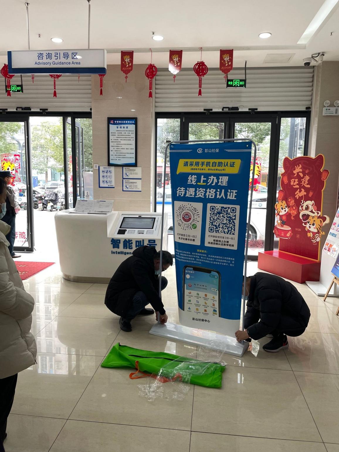 会后,中心工作人员立即在主要银行网点安装电子社保卡待遇认证展板。截至目前,已在彭山区建设银行、工商银行、农业银行以及农村信用社等主要银行安装手机自助认证展板7个、水电七局安装展板5个,待遇领取人员只需打开微信扫一扫展板的二维码,申请电子社保卡后即可进行认证。