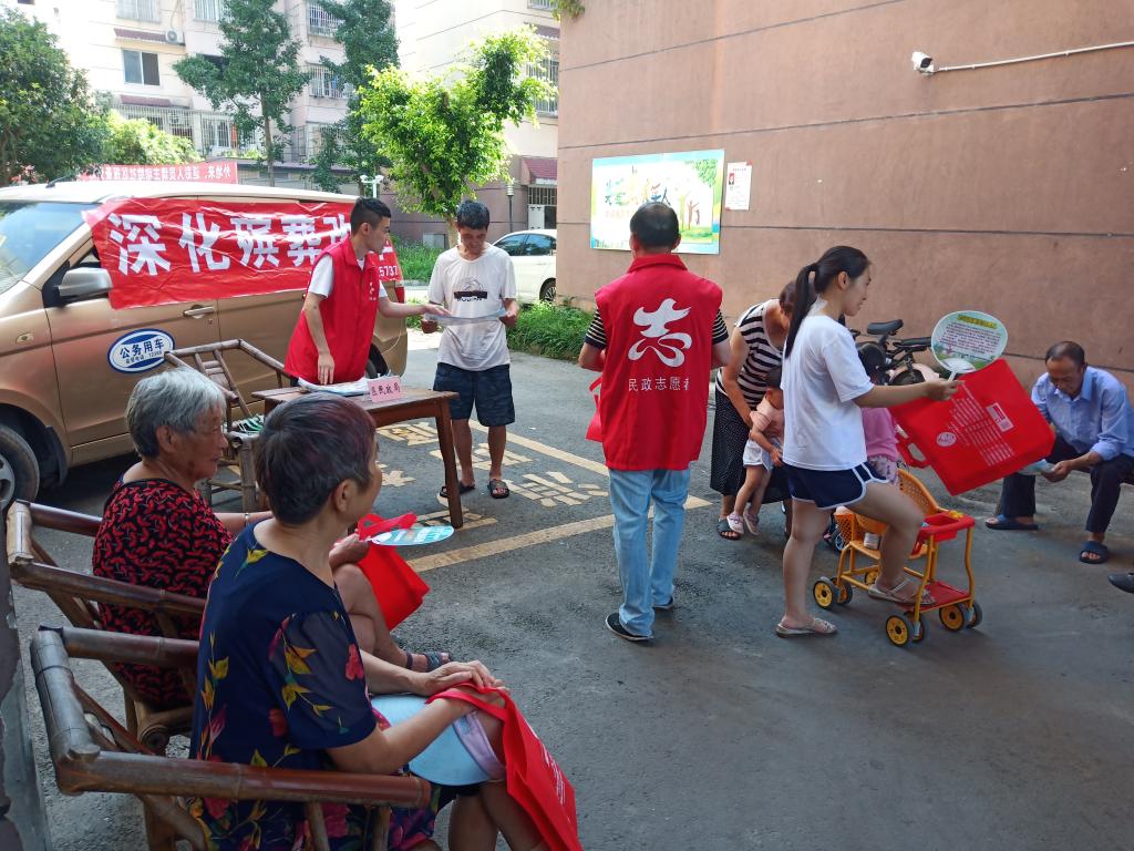 2022年7月8日,彭山区民政局开展社区共建工作——开展全国文明城市、国家卫生城市单位以及疫情防控、禁毒和防范远离电信网络诈骗、殡葬工作宣传。