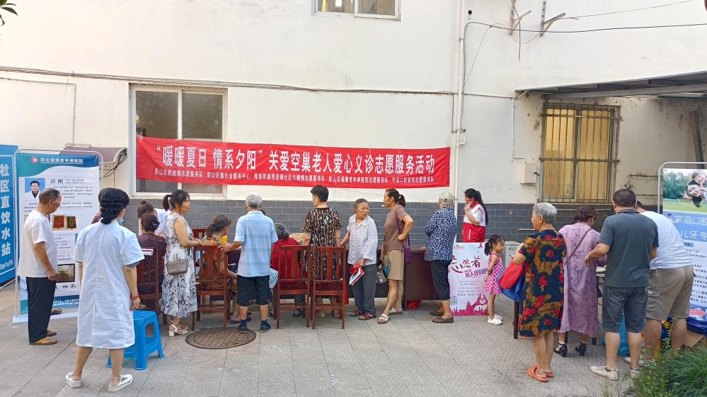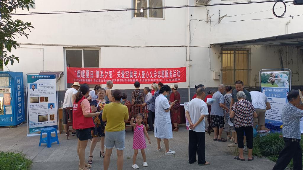 2023年8月14日,彭山区民政局志愿服务队、彭山区鑫社会服务中心、观音街道观音铺社区巾帼情志愿服务队、彭山区福康老年病医院志愿服务队、宇滔口腔医院志愿服务队开展“暖暖夏日情 情系夕阳”关爱空巢老人爱心义诊志愿服务活动。