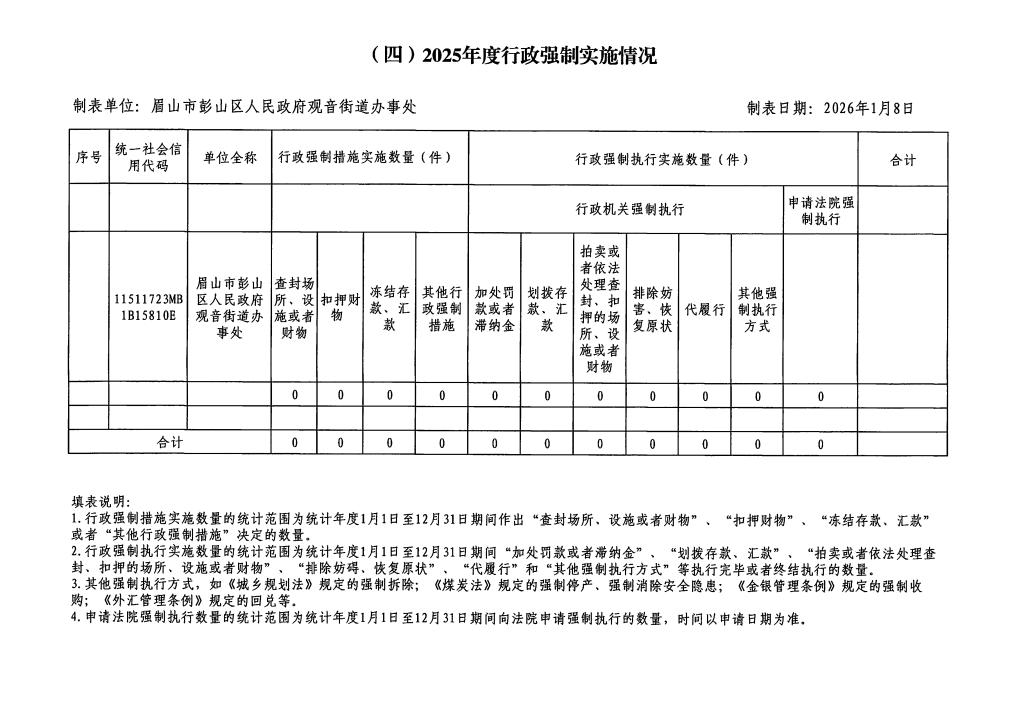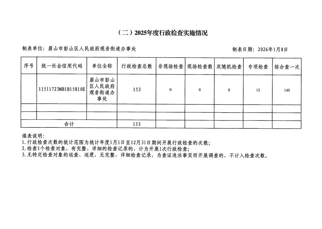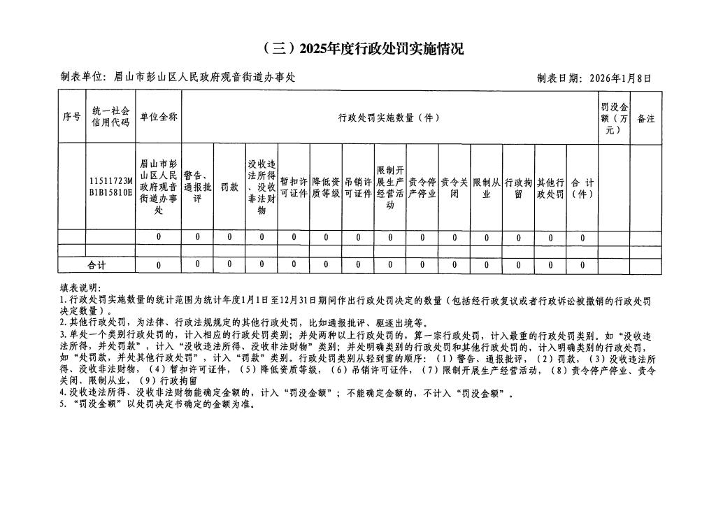 • 名 称:眉山市彭山区观音街道办事处关于2025年度行政执法情况的公示