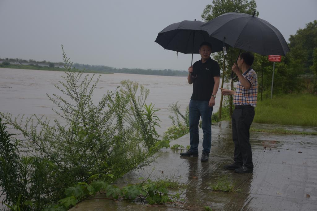 2019年7月22日,镇党委书记查看岷江水位上涨情况。