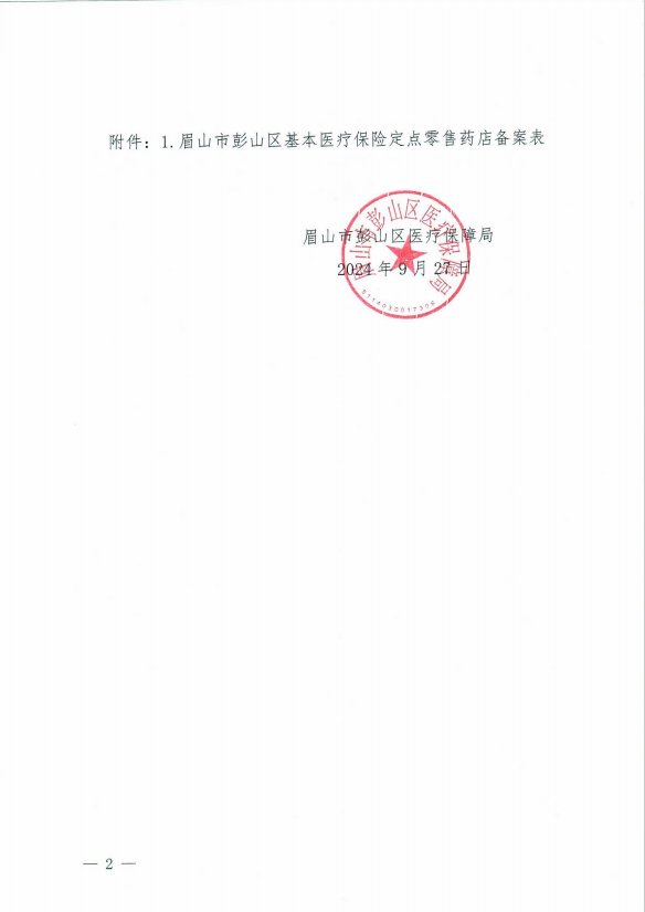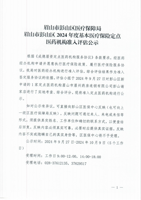 眉山市彭山区医疗保障局眉山市彭山区2024年度基本医疗保险定点医药机构准入评估公示(9月)