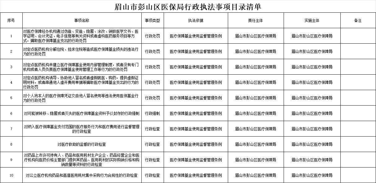 眉山市彭山区医保局行政执法事项目录清单