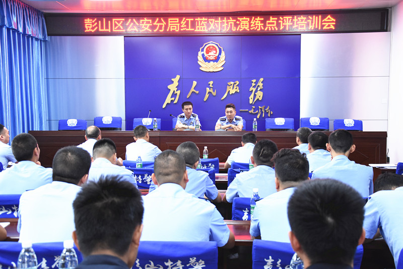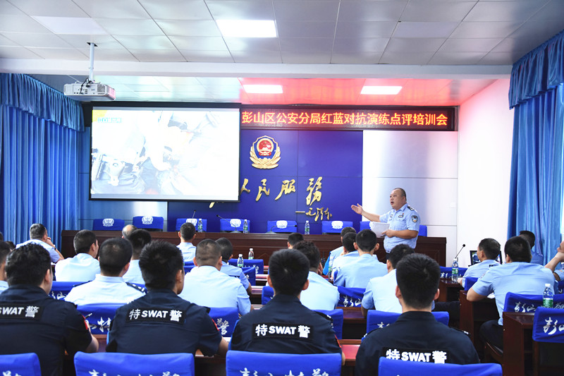 为强力推动全警实战大练兵、牢固树立实战化训练导向,确保红蓝对抗演练的取得实效,7月21日下午,彭山区分局召开了红蓝对抗演练点评暨培训会,会议由党委委员、政治处主任邓剑主持,分局红蓝对抗教官团、派出所及相关部门主要领导、警务技能参训民辅警参加了培训。