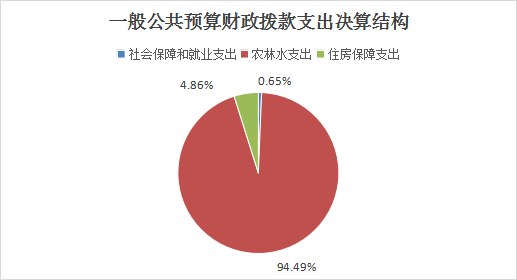 2024年一般公共预算财政拨款支出477.98万元,主要用于以下方面:社会保障和就业支出3.09万元,占0.65%;农林水支出451.64万元,占94.49%;住房保障支出23.25万元,占4.86%。