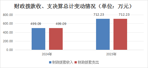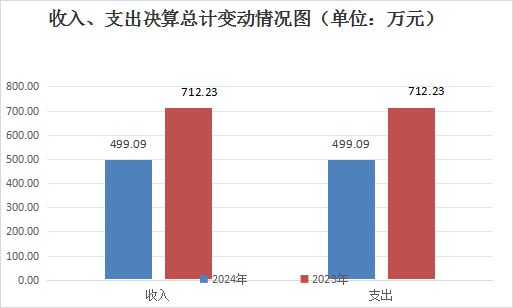 2024年度收、支总计499.09万元。与2023年相比,收、支总计各减少213.14万元,下降29.93%。主要变动原因是人员经费减少项目数据减少。