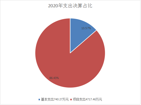 2020年本年支出合计5457.73万元,其中:基本支出740.27万元,占13.57%;项目支出4717.46万元,占86.43%。