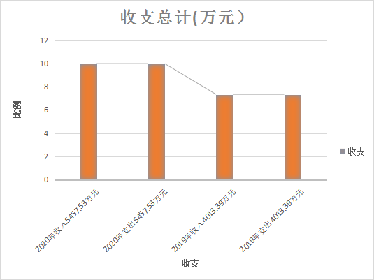 2020年度收、支总计5457.53万元。与2019年4013.39万元相比,收、支总计各增加1444.14万元,增长/26.46%。主要变动原因是竹韵廊公园建设和李密大道北延伸段完工后进入支付阶段。