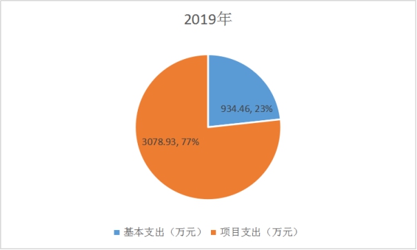 2019年本年支出合计4013.39万元,其中:基本支出934.46万元,占23.28%;项目支出3078.93万元,占76.72%;