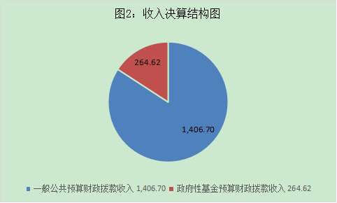 2022年本年收入合计1,671.32万元,其中:一般公共预算财政拨款收入1,406.7万元,占84.2%;政府性基金预算财政拨款收入264.62万元,占15.8%。无国有资本经营预算财政拨款收入、上级补助收入、事业收入、经营收入、附属单位上缴收入。