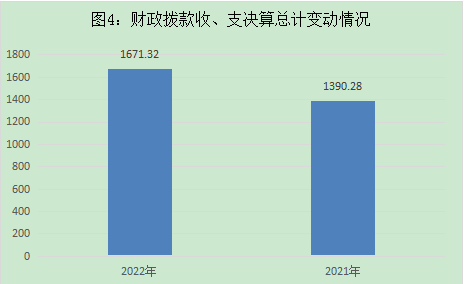 2022年财政拨款收、支总计1,671.32万元。与2021年相比,财政拨款收、支总计均增加281.04万元,增长20.2%。主要变动原因是区道安办没有财政账户,所有预算在本单位账户,其申请的政府性基金264.62万使交警队总预算增加。