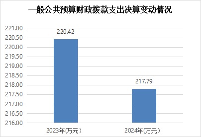2024年一般公共预算财政拨款支出217.79万元,占本年支出合计的100%。与2023年相比,一般公共预算财政拨款支出减少2.63万元,下降1.19%。主要变动原因是2024年人员调动基本支出减少。