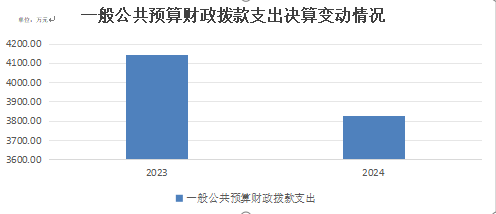 2024年一般公共预算财政拨款支出3826.61万元,占本年支出合计的11.69%。与2023年相比,一般公共预算财政拨款支出减少315.31万元,下降7.61%。主要变动原因是一般性项目支出减少。