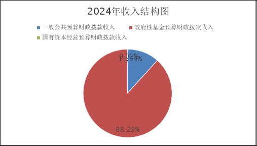 2024年本年收入合计32726.49万元,其中:一般公共预算财政拨款收入3826.59万元,占11.69%;政府性基金预算财政拨款收入28892.50万元,占88.29%;国有资本经营预算财政拨款收入7.39万元,占0.02%。