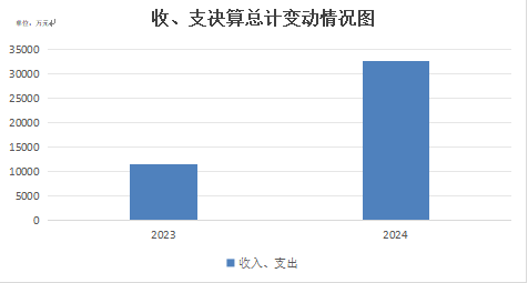 2024年度收、支总计均为32726.49万元。与2023年度相比,收、支总计各增加21279.92万元,增长185.91%。主要变动原因是支付武阳倾城、武阳锦园货币补助购买商品房安置购房款。