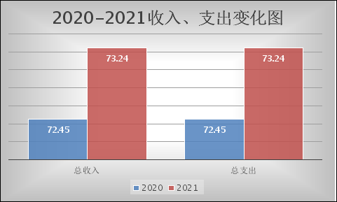 2021年度收、支总计73.24万元。与2020年相比,收、支总计各增加0.79万元,增长1.09%。主要变动原因是调资和人员变动。