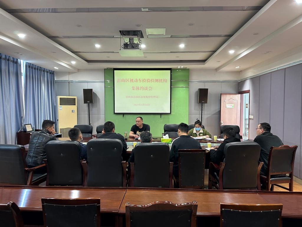 为加强机动车检测机构监管,强化机动车检测机构的主体责任意识和风险防范意识,彭山区市场监管局结合“春雷行动2023”于2023年3月14日召开了机动车检验检测机构集体约谈会,对全区4家车检机构法人代表、质量负责人和技术负责人进行集体约谈。
